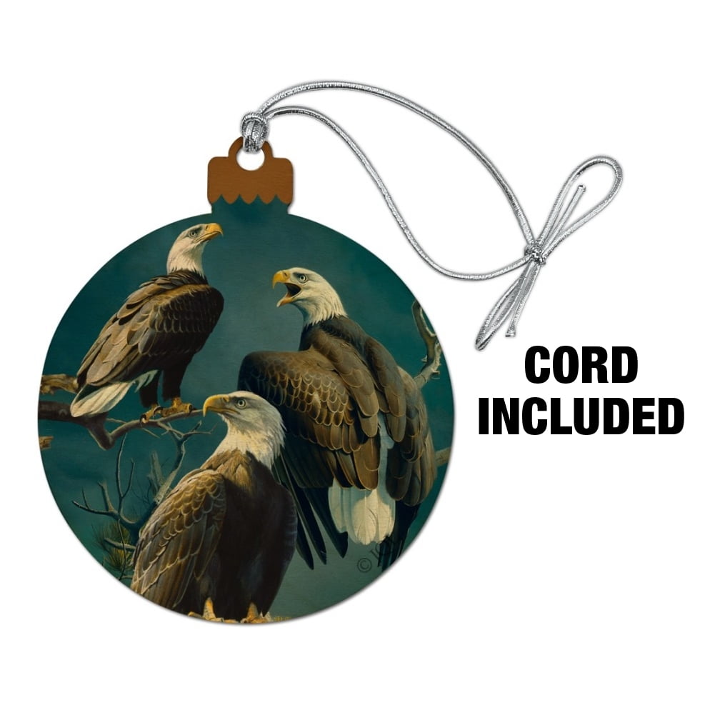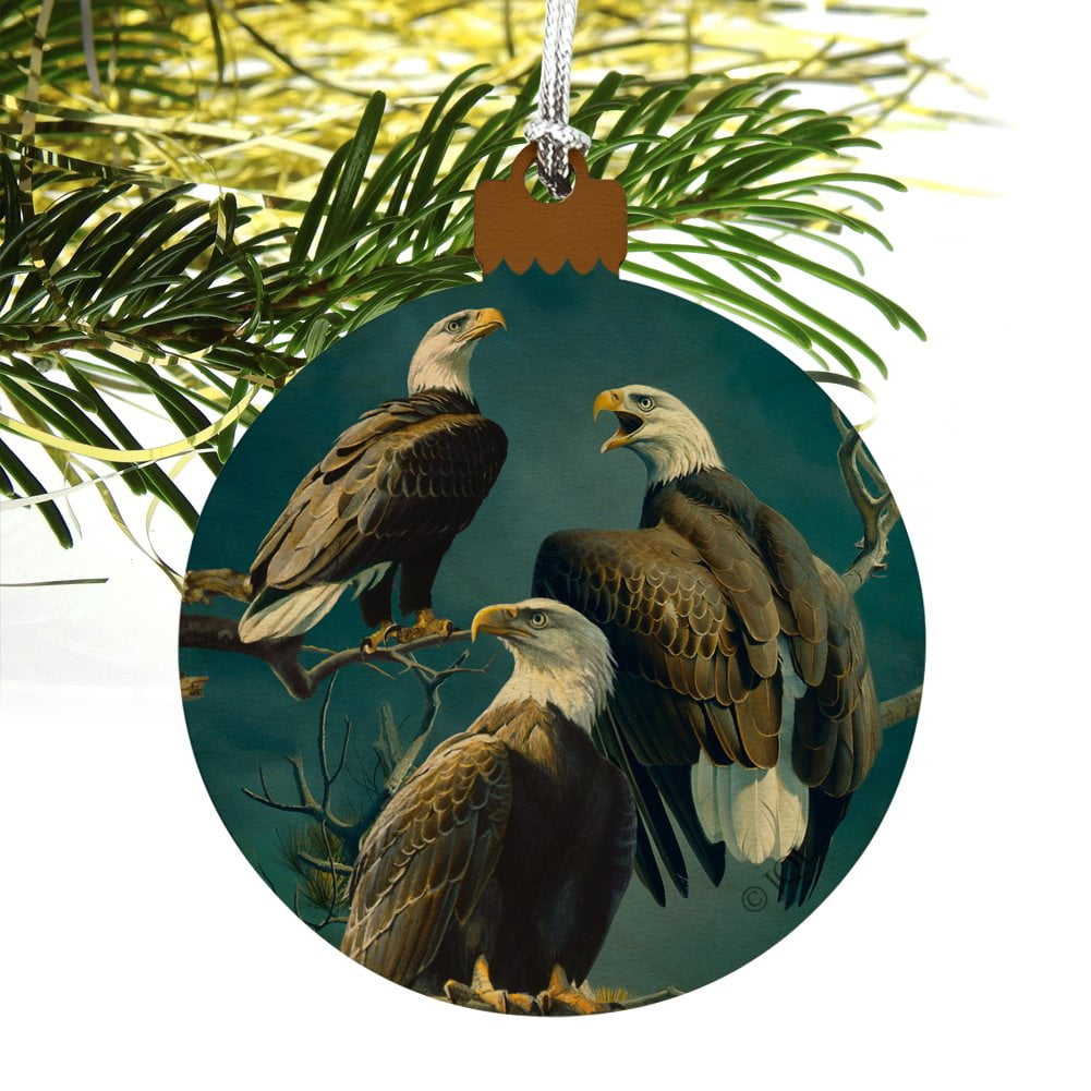 Bald Eagle Tree Top Gathering Wood Christmas Tree Holiday Ornament