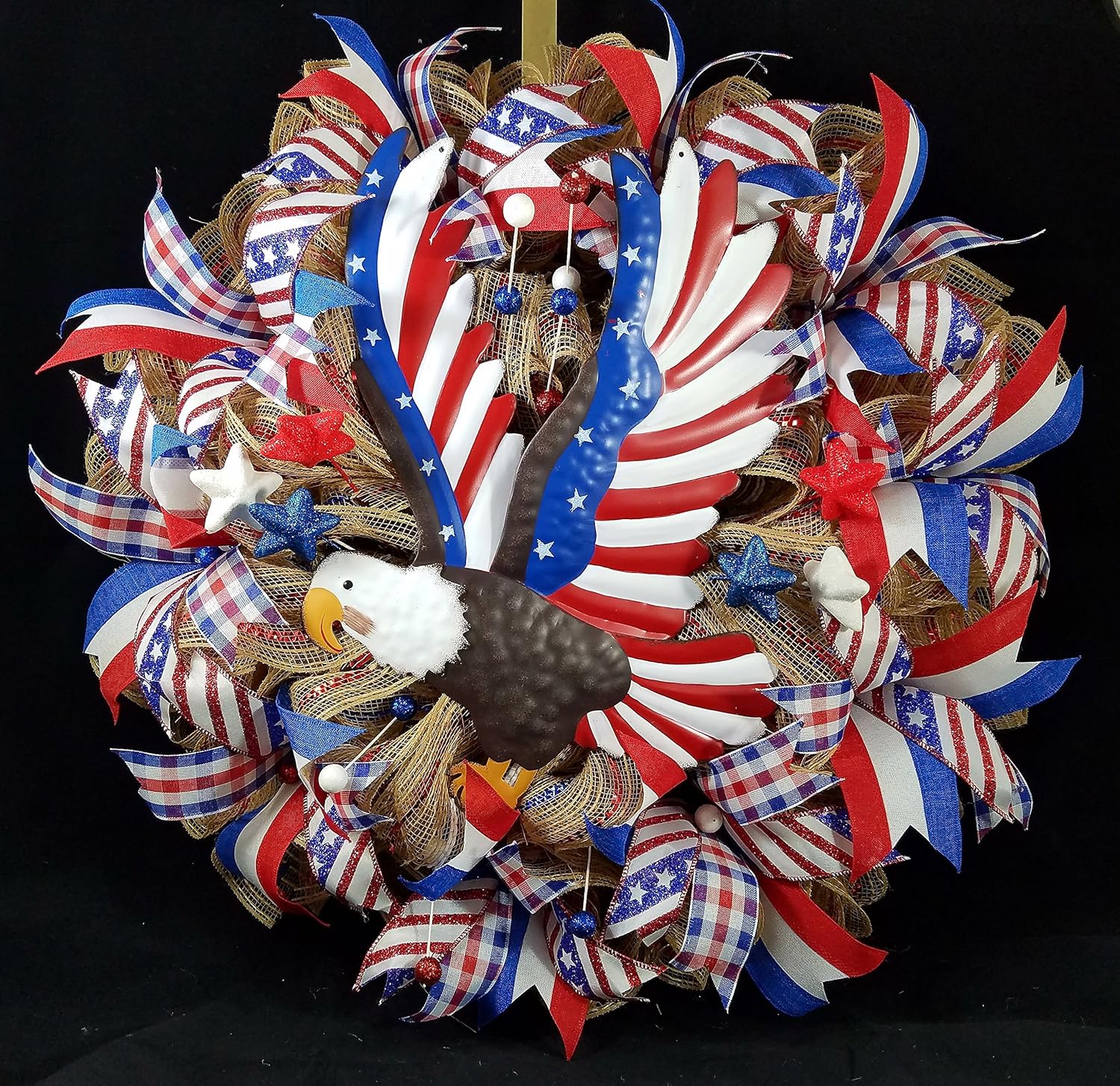 Amazon Com Patriotic Usa Burlap American Bald Eagle Wreath 26