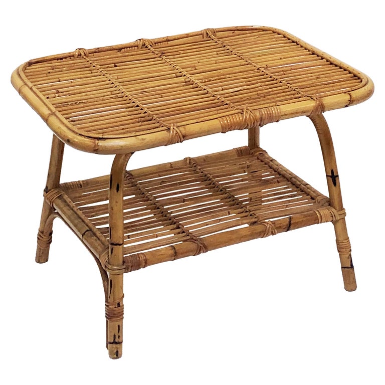 Italian Rattan Midcentury Accent Table Of Cane And Bamboo For Sale At 1stdibs