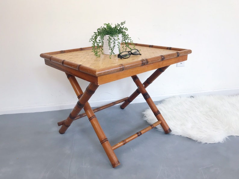 Vintage Bamboo Table Mid Century Folding Side Table Tv Tray Etsy