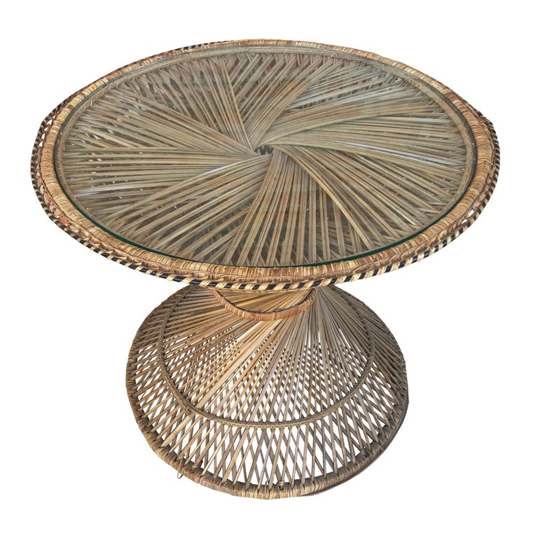 Lot Art Red Ficks Reed Bamboo And Glass Round Coffee Table