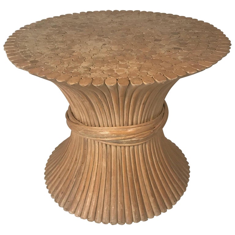 Mid Century Modern Mcguire Round Wheat Bamboo Sheaf Base Coffee