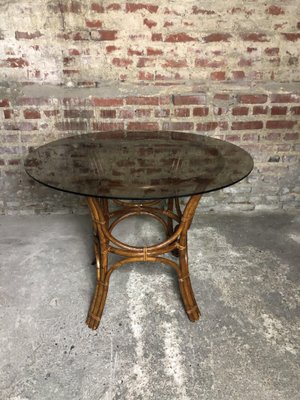80 S Vintage Vintage Smoked Glass Table With Round Bamboo Dining