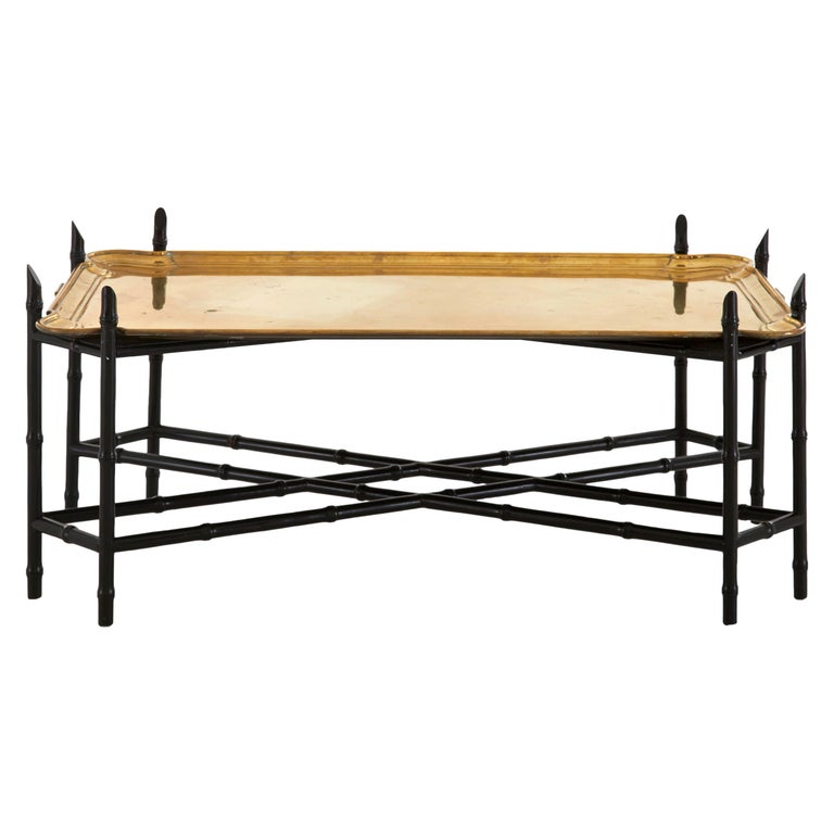 Chinoiserie Faux Bamboo Coffee Table With Brass Tray Top At 1stdibs