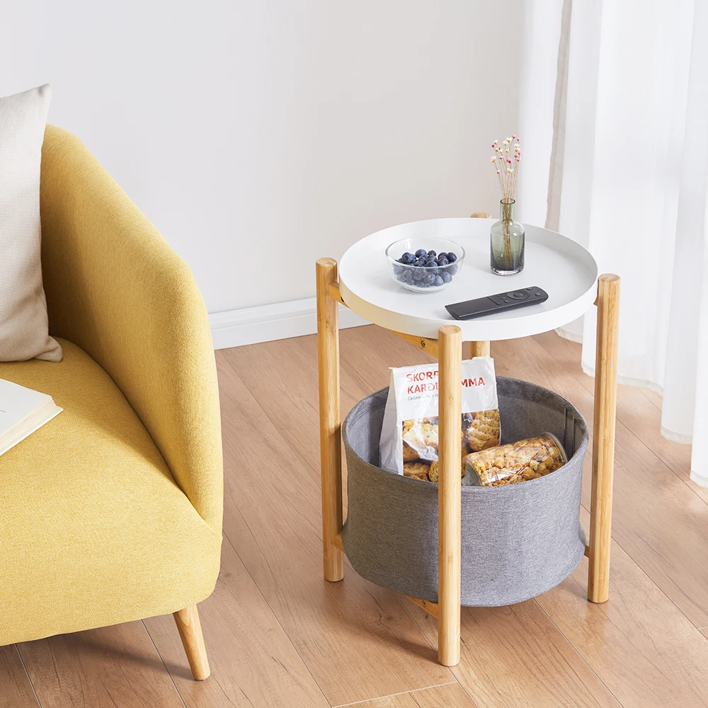 Round End Table Nightstand Gray Bamboo Side Table Serving Tray Stand Table Coffee Tables Aliexpress