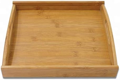 100 Bamboo Wood Serving Tray With Handles Breakfast Coffee Table Tray For Sale Online