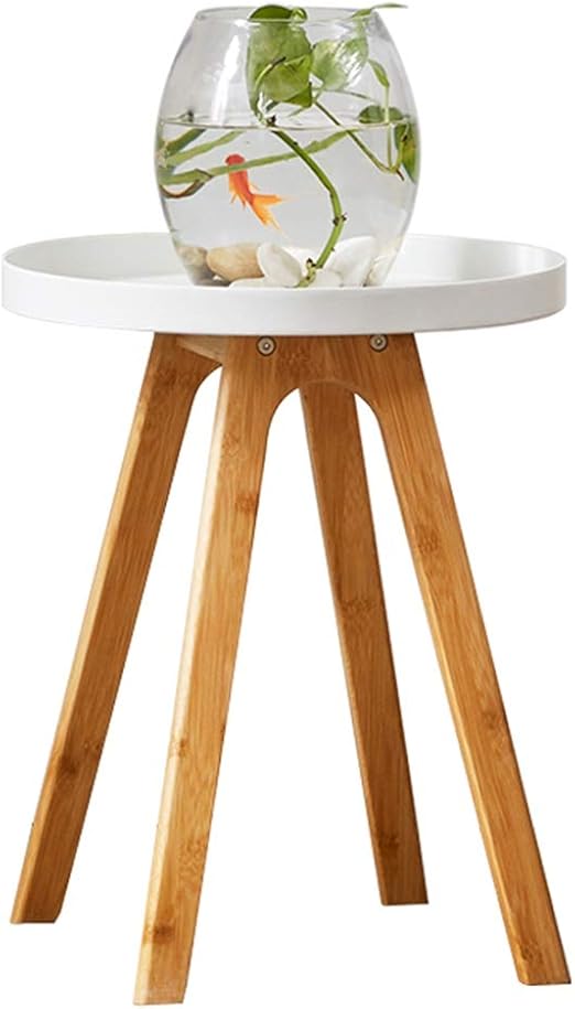 Bamboo Coffee Table Side Table Four Legged Support Metal Tray Style Tabletop Lightweight And Space Saving Designed For Modern Living Room Bedroom Round White Amazon Co Uk Kitchen Home