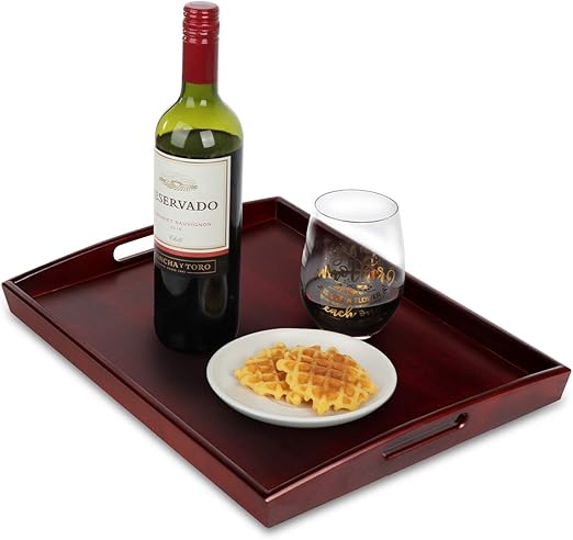 Amazon Com Joy Grace 100 Bamboo Wood Butler Serving Tray With Handles Breakfast Coffee Table Tray Decorative Ottoman Tray Serving Platter For Party 17 13 Kitchen Dining