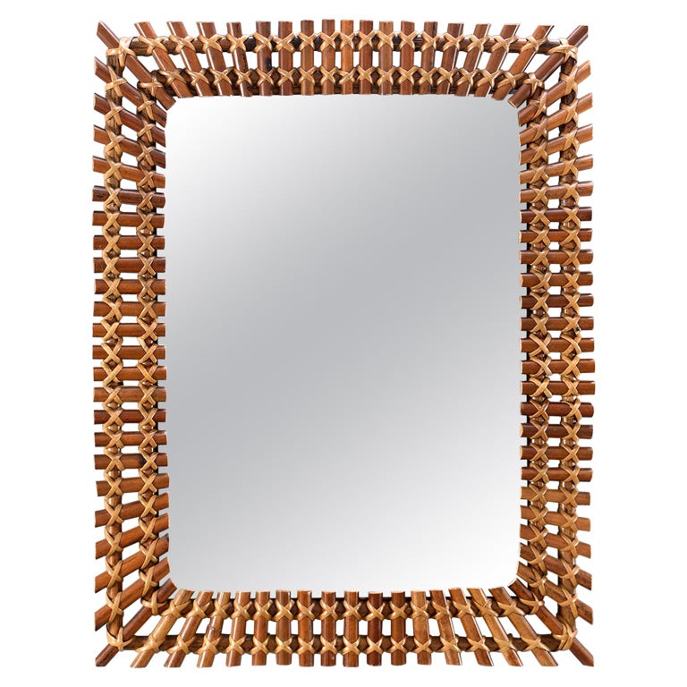 1970s Spanish Bamboo And Wicker Framed Mirror At 1stdibs
