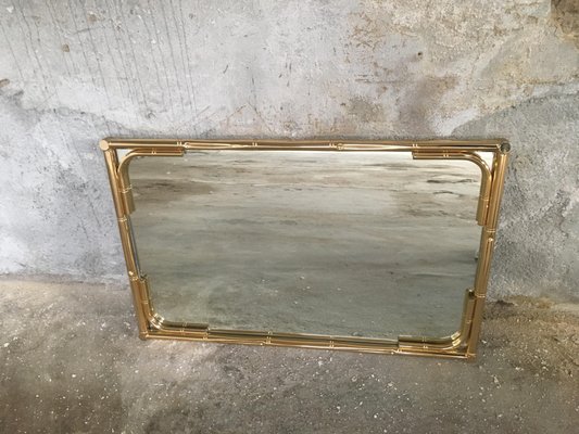 Vintage Italian Faux Bamboo Gilt Metal Framed Mirror 1970s For