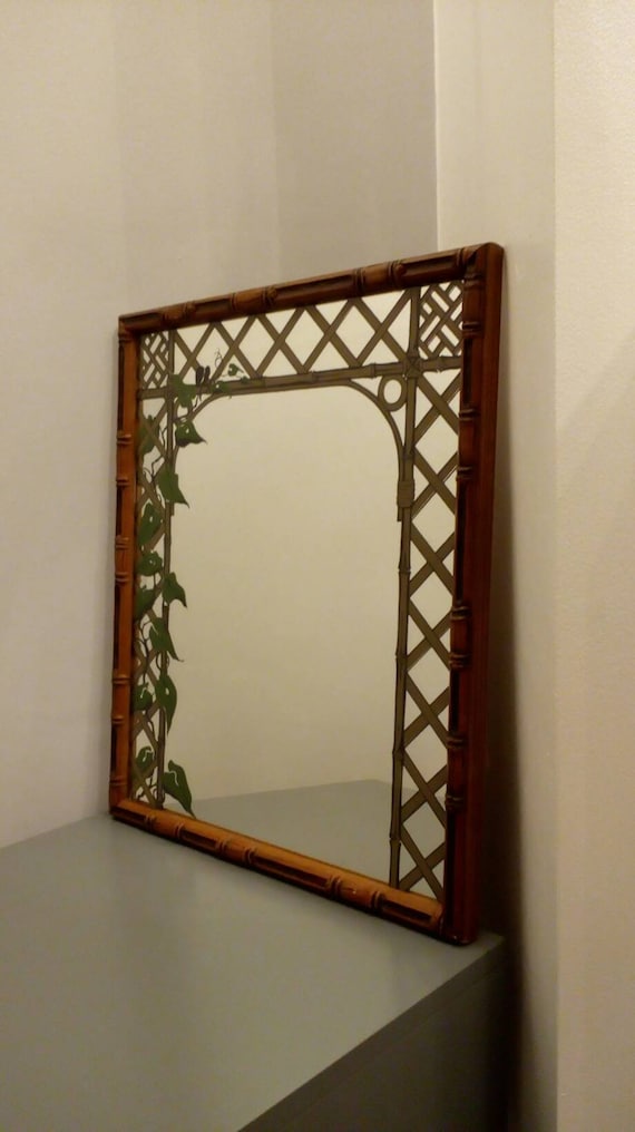 Kitsch Hand Printed 70 S Bamboo Framed Mirror Etsy
