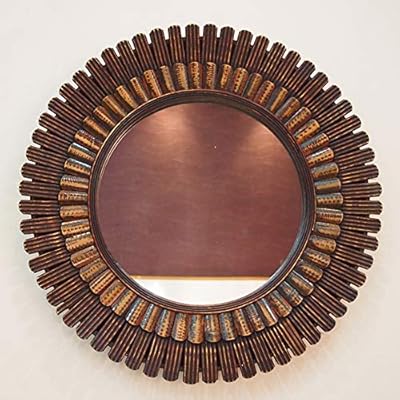 Rustic Wall Art Decor Round Wooden Mirror Natural Bamboo Framed