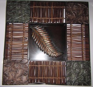 Metal Wall Sculpture Square Decor Leaf Flowers Bamboo Sticks