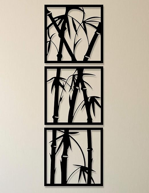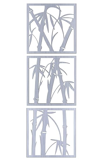 Set Of 3 Panels Bamboo Metal Wall Art Hanging Sculpture Mastercut