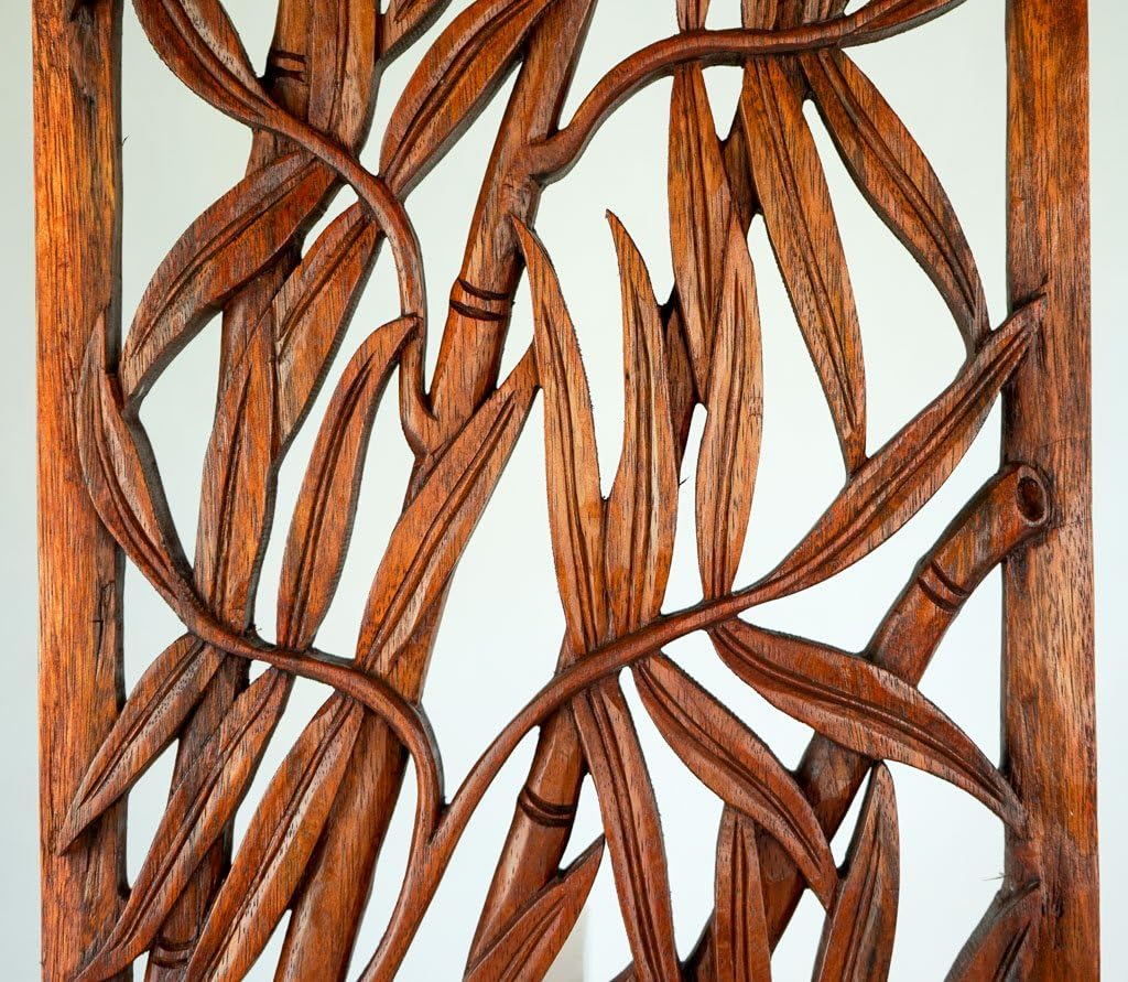 Oriental Wall Panel Bamboo Bali Sculpture Teak Wood