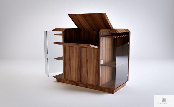 Wine Cabinet Solid Oak Liquor Cabinet Wood Bar Cabinet Glass Etsy