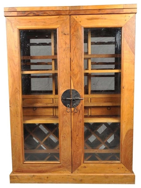 Argana Solid Wood Glass Door 36 Bottle Cellar Wine Rack Transitional Wine And Bar Cabinets By Sierra Living Concepts