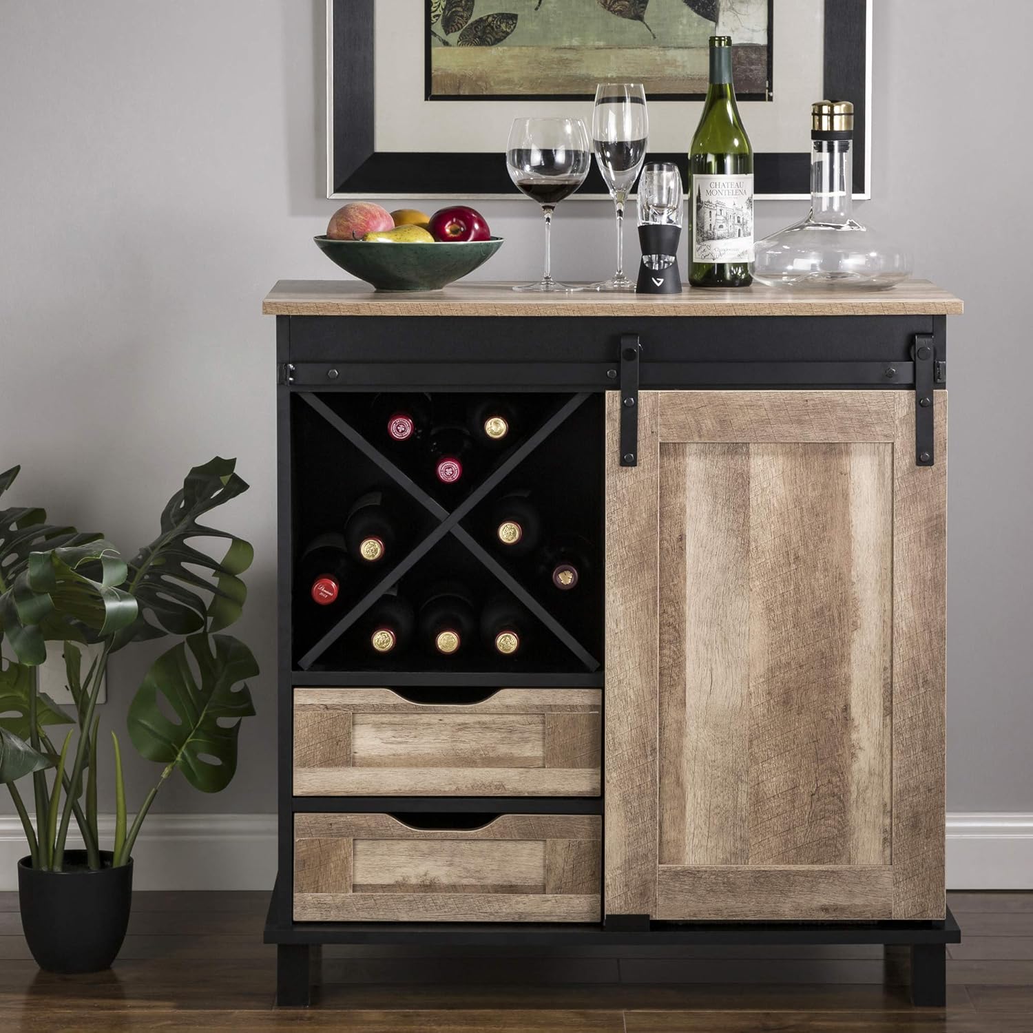 Farmhouse Accent Console Cabinet Buffet Bar Storage Sliding Door