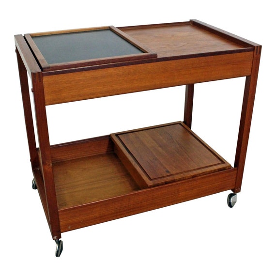 Teak Dry Bar Sliding Door Cart Mid Century Danish Modern Etsy