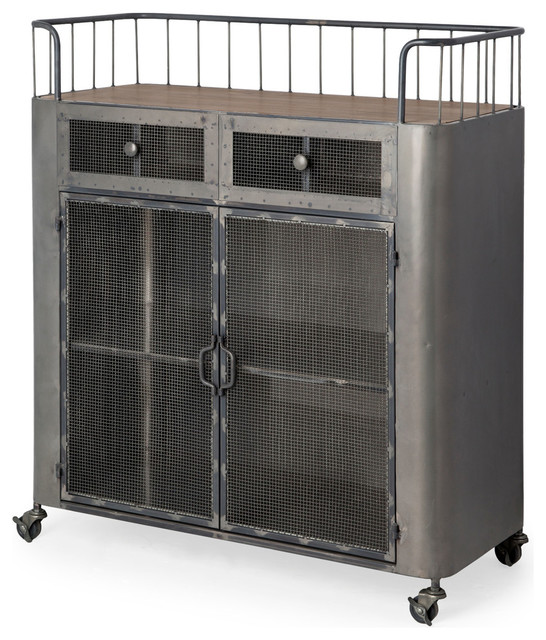 33 Urban Industrial Bar Cabinet Rolling Cart With Mesh Doors