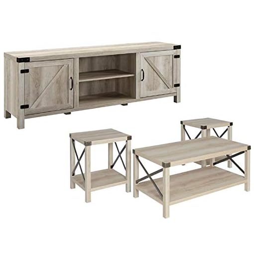 Home Square 4 Piece Barn Door Tv Stand Coffee Table And 2 End