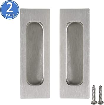 2 Pack Stainless Steel Flush Pull Barn Door Handle Rectangle